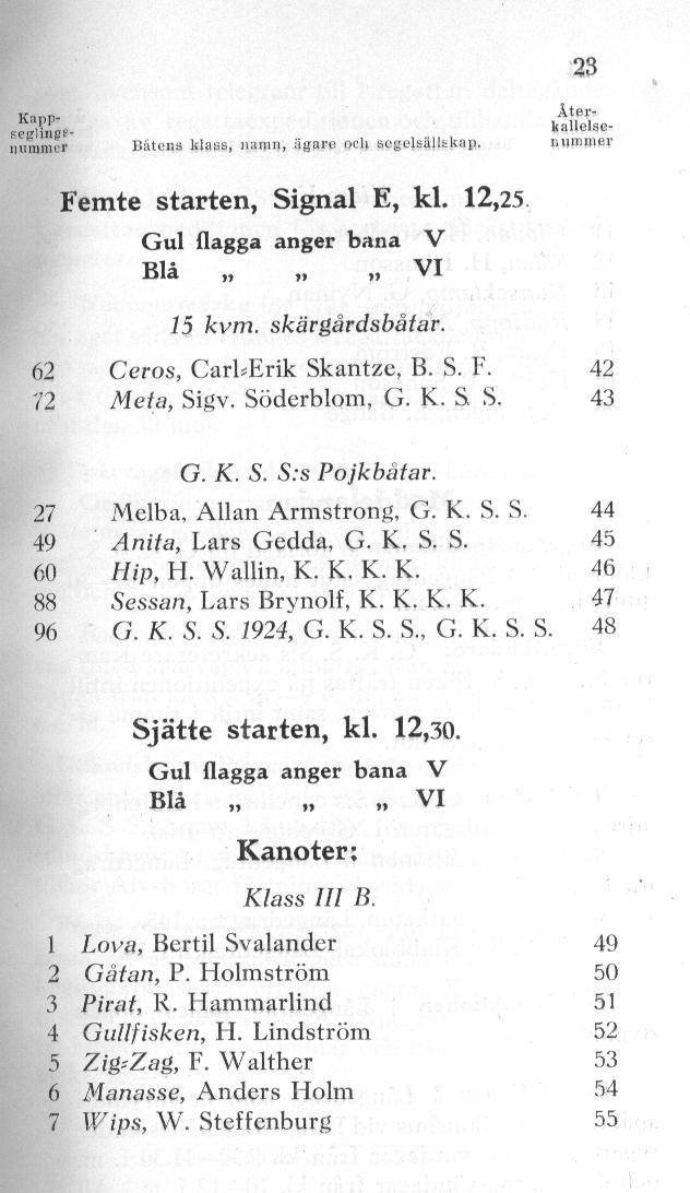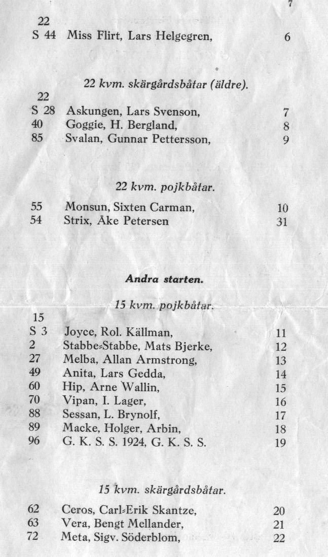 Startlistor från kappseglingar med Stjärnbåten - 1924