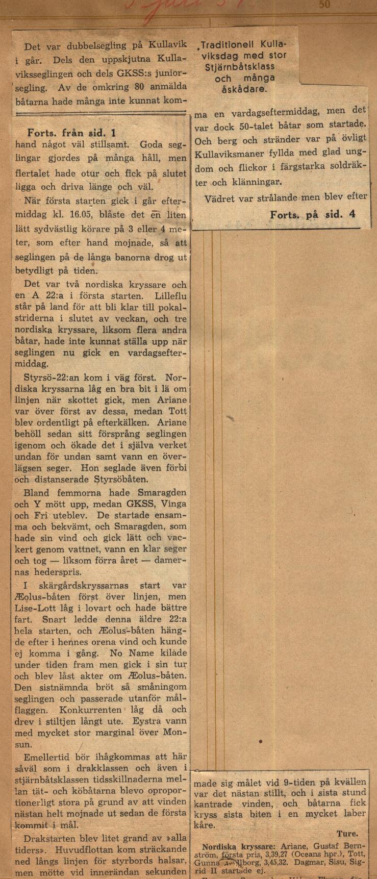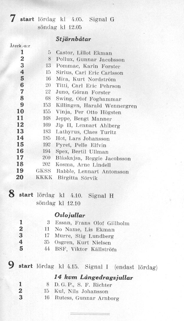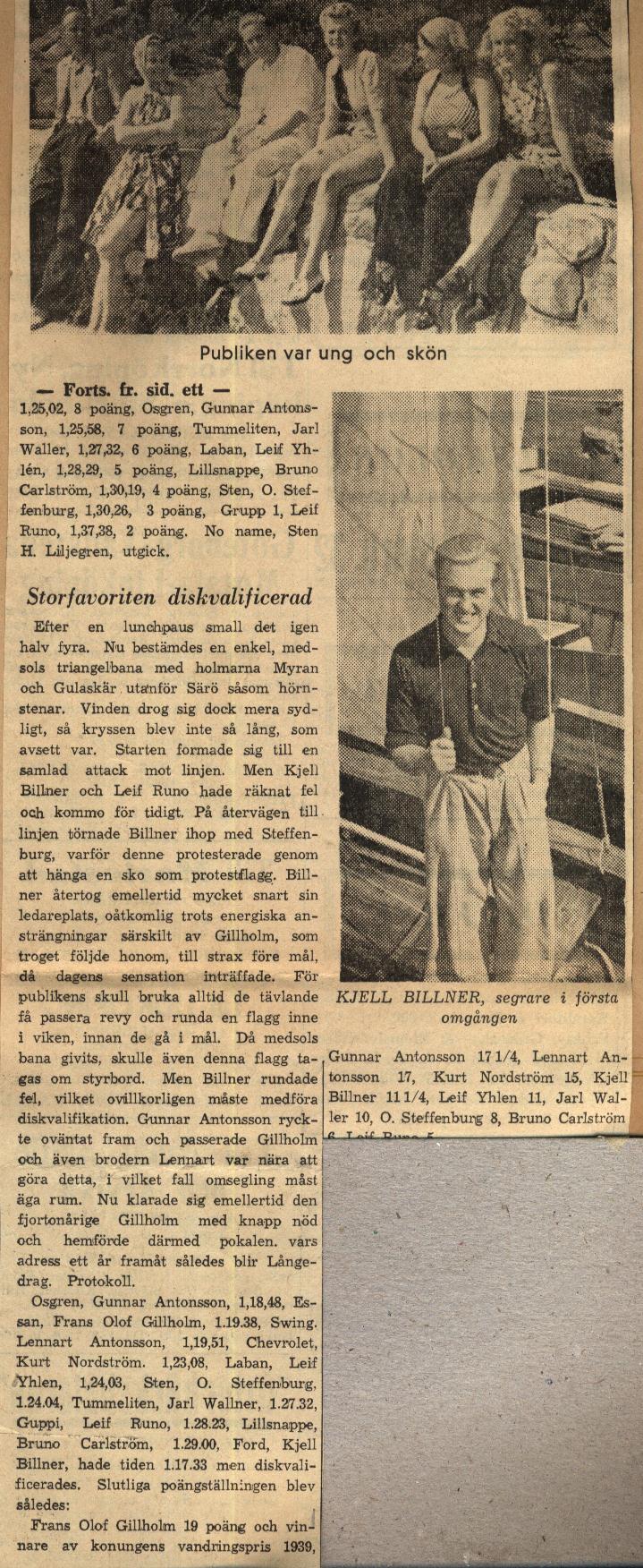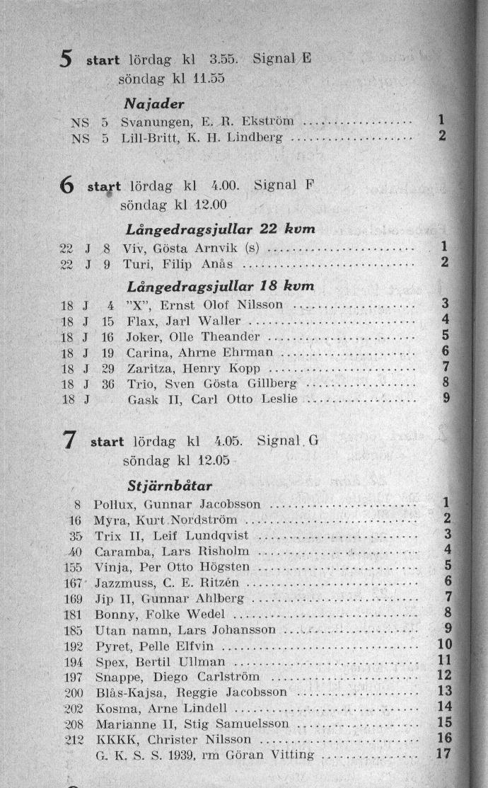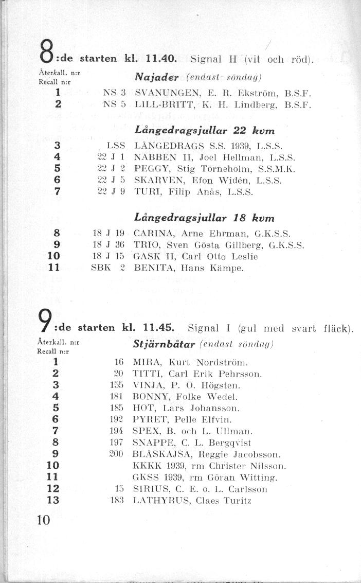 Startlistor från kappseglingar med Stjärnbåten - 1939