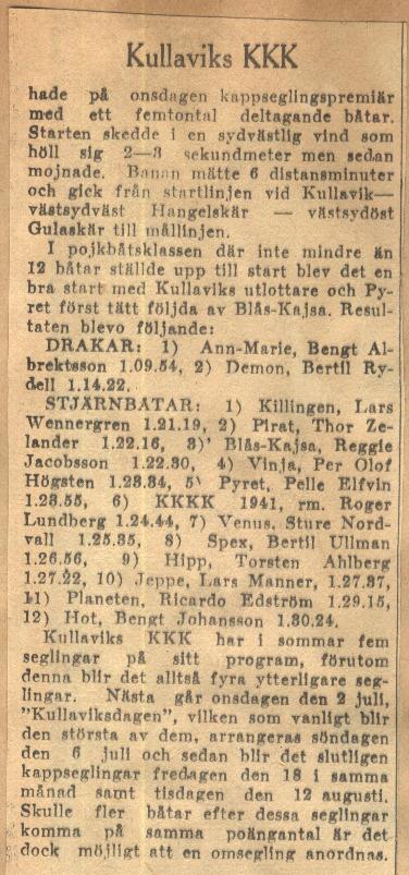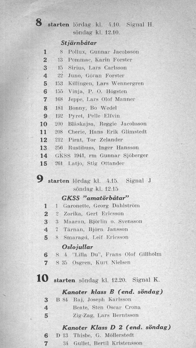 Startlistor från kappseglingar med Stjärnbåten - 1941 |
