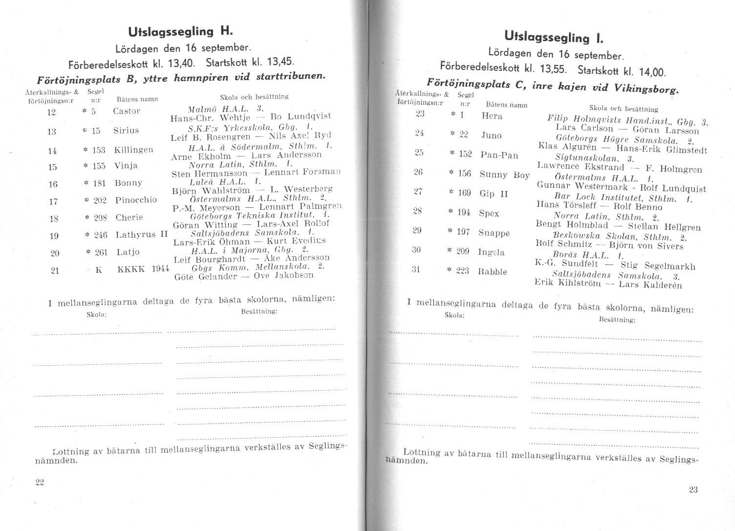 Startlistor från kappseglingar med Stjärnbåten - 1944