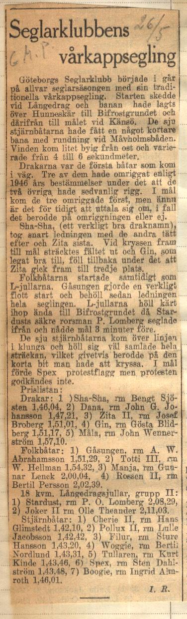 Startlistor från kappseglingar med Stjärnbåten - 1946 |