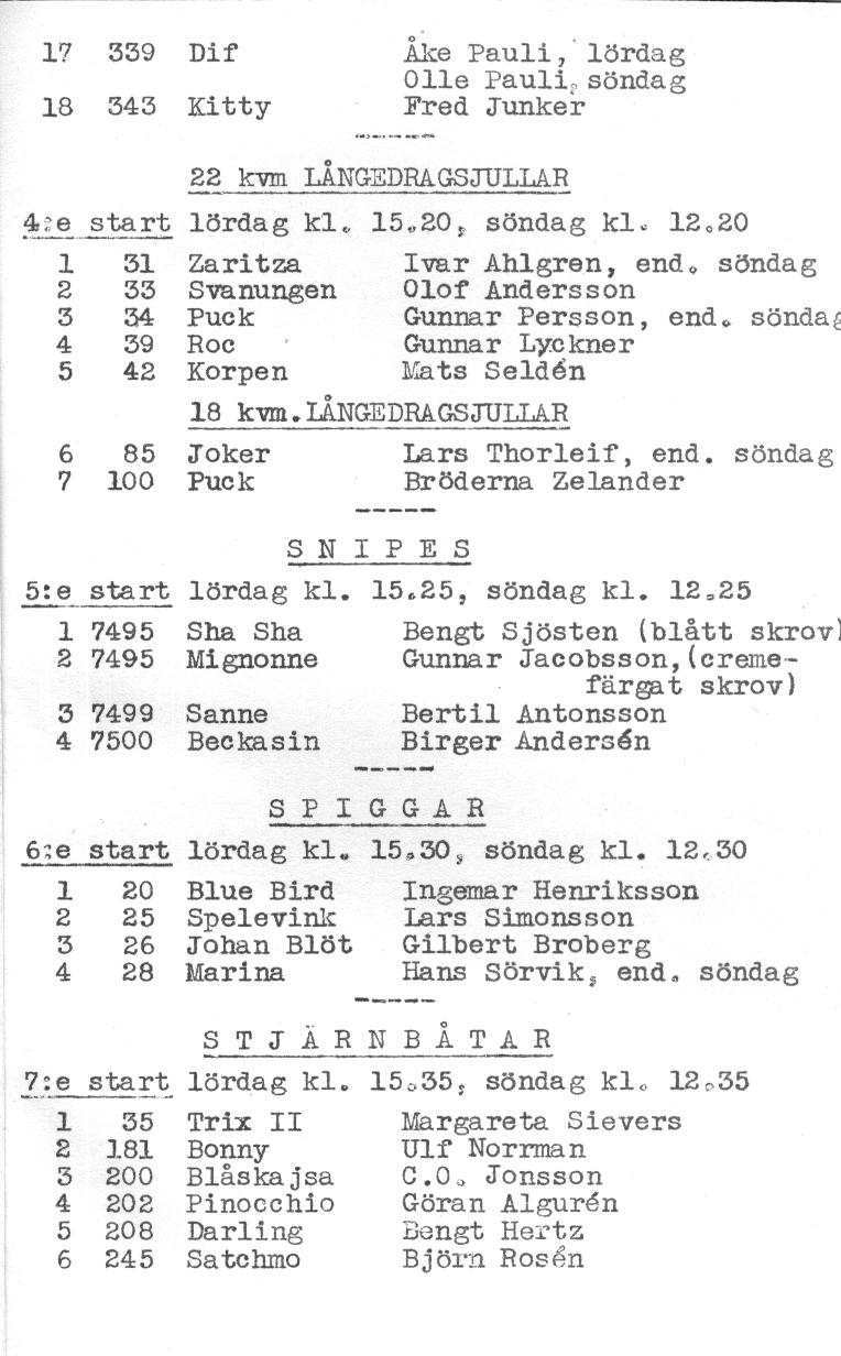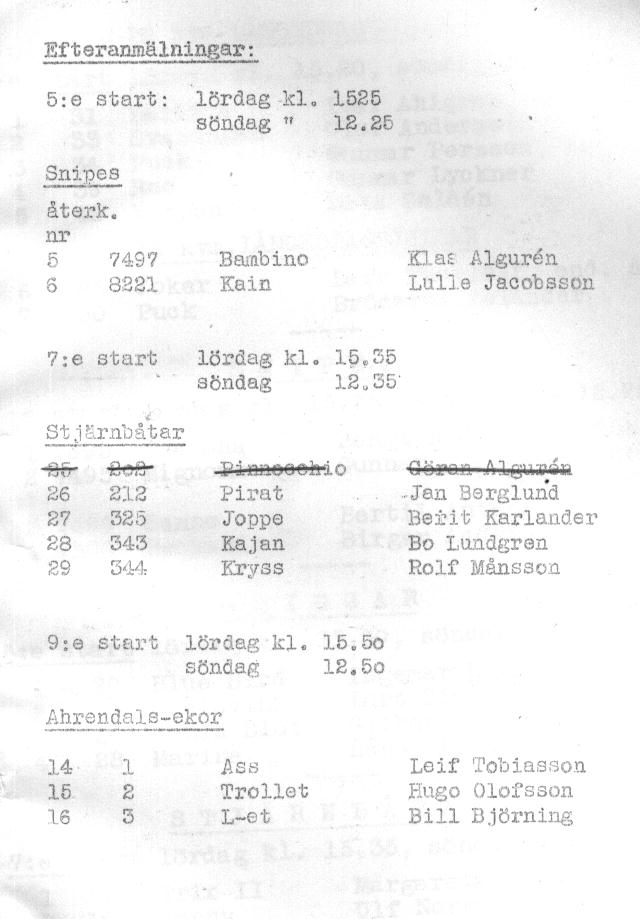 Startlistor från kappseglingar med Stjärnbåten - 1951