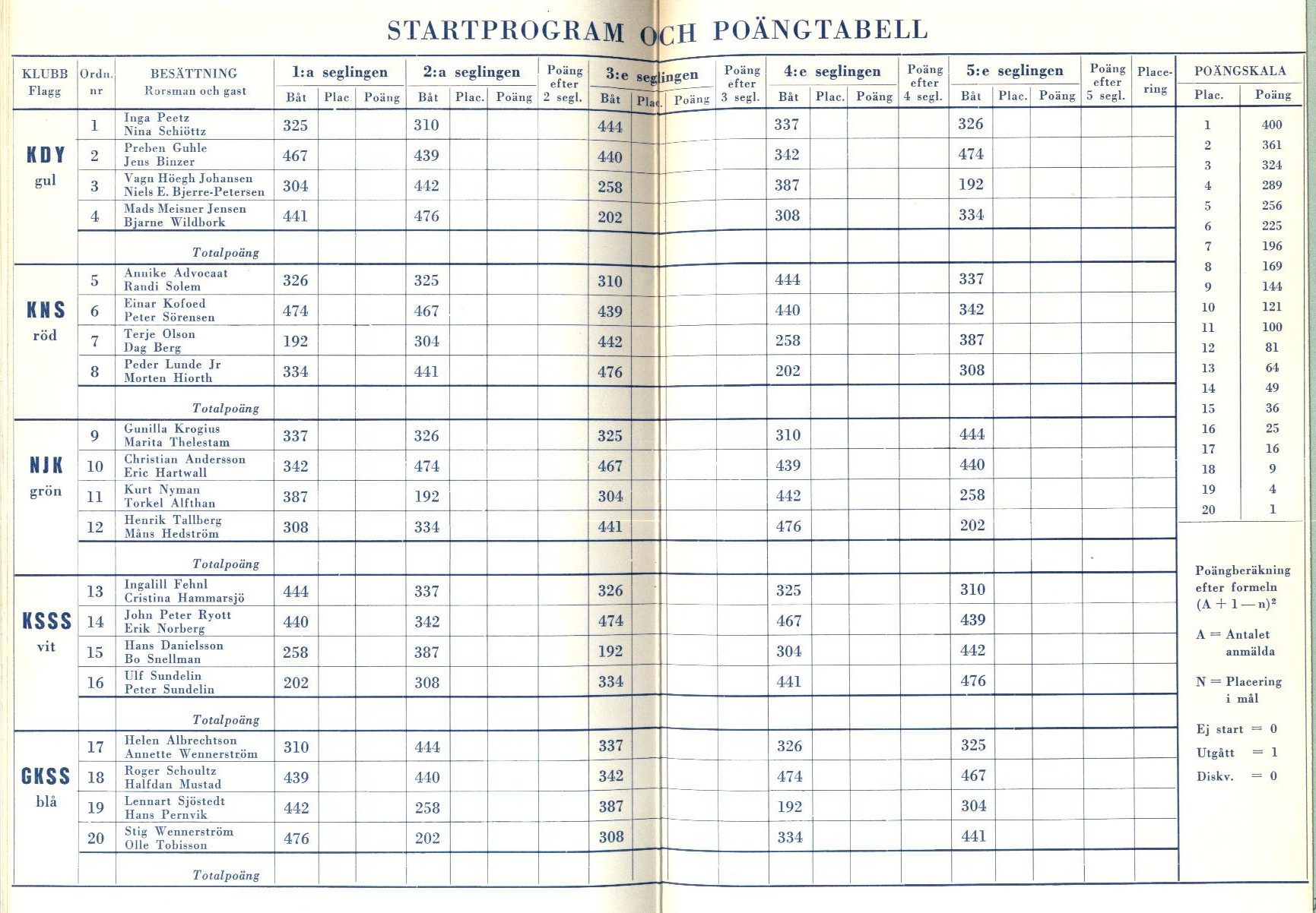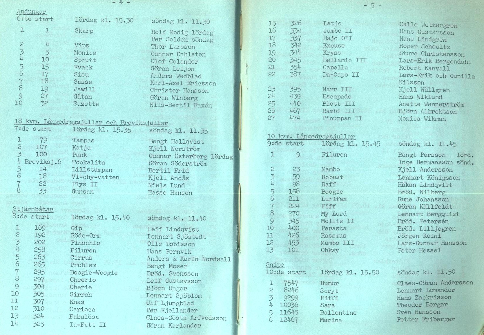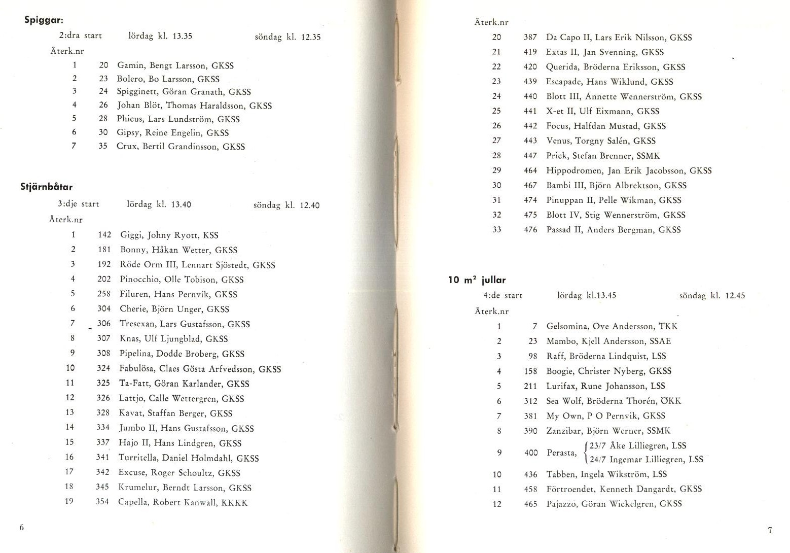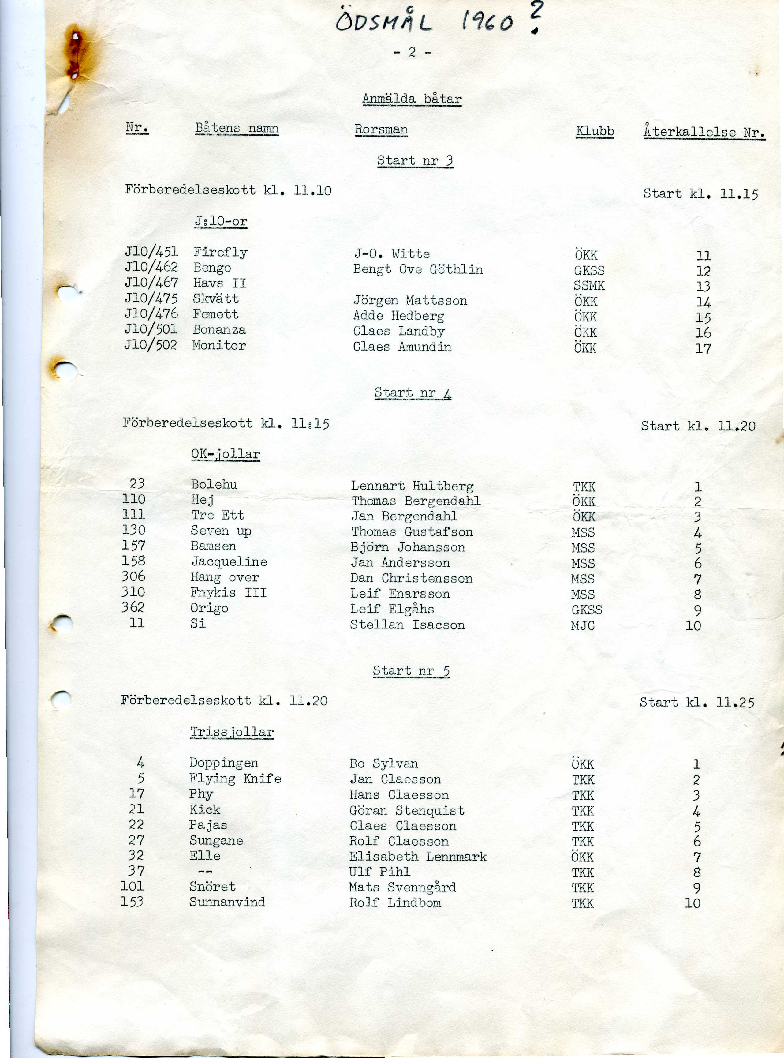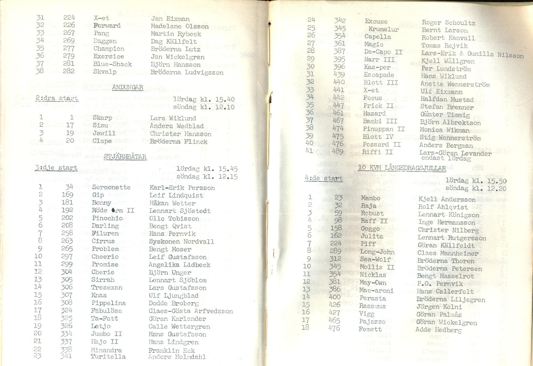 Startlistor från kappseglingar med Stjärnbåten - 1960 |
