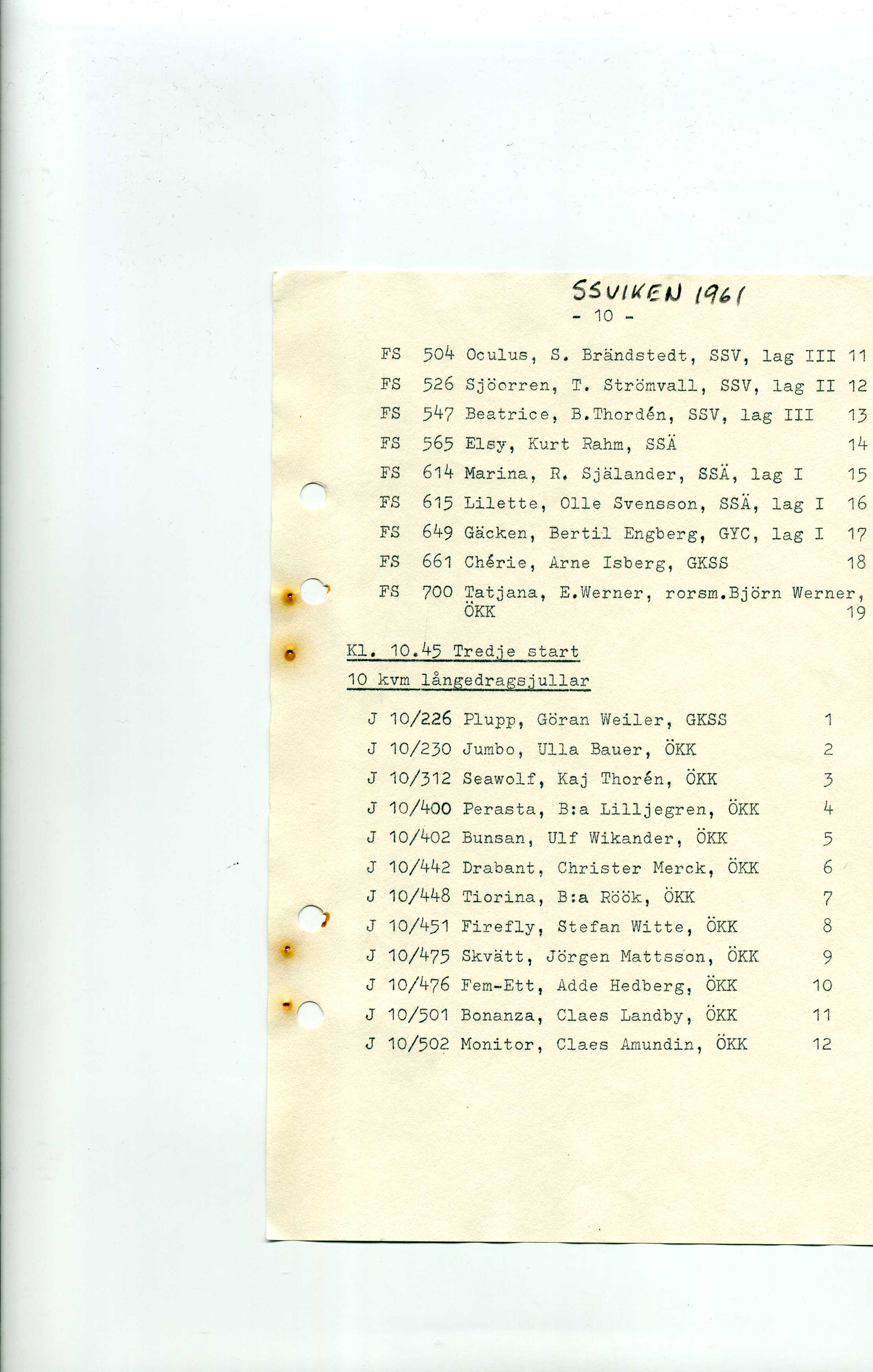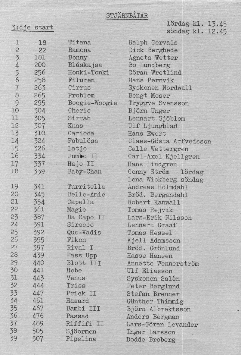 Startlistor från kappseglingar med Stjärnbåten - 1961